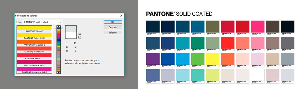 Siempre que trabajemos para serigrafiar, intentaremos usar diseños con tintas planas. En este tipo de impresión, se utilizan colores directos, y muchos profesionales recomiendan la paleta de colores Pantone Solid Coated (en este enlace podréis verla y descargarla desde la web de Amazon).