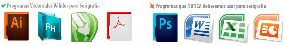 Softwares NO recomendados para serigrafía: Adobe Photoshop, Microsoft Excel, Word y Power Point