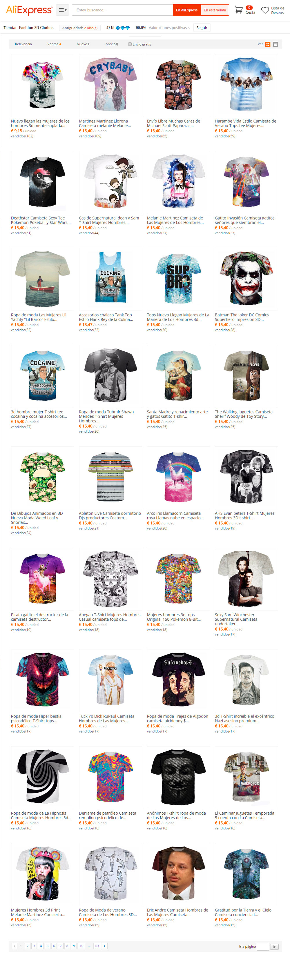 Si has tenido alguna vez la curiosidad de saber cuales son las camisetas de tendencia del portal, aquí tienes un simple pantallazo de la pagina web AliExpress, con un filtro por las camisetas más vendidas.